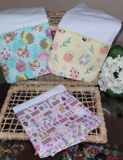 Kit com 3 Panos de Prato – Estampas Exclusivas de Páscoa!